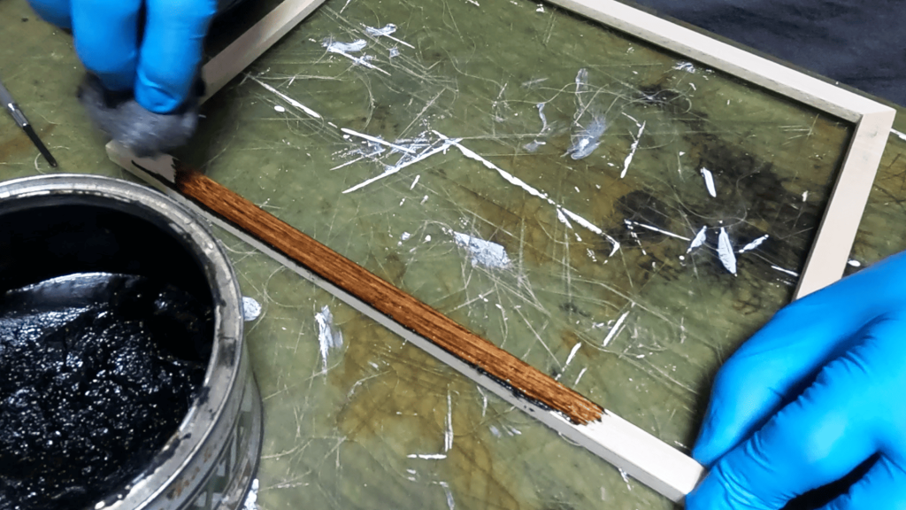 ニスとかだと、筆ムラができたり、筆の毛が抜けて固まったり、毛羽だったり、何より乾くのを待たないといけない。そのどれもが全くないブライワックス。
